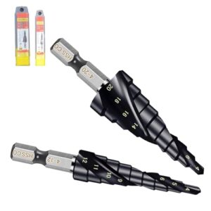 六角軸ステップドリル、ツイストドリルM35コバルト高速鋼、窒化チタンコーティング両刃ドリルビット2ピースセット[4-20mm/4-12mm]、板金およびアルミニウム、木工、DIYツール、家庭用