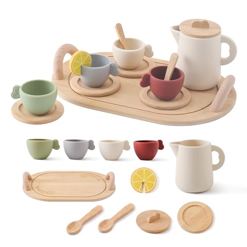 Wooden Teether アフタヌーンティーセットは、親子遊びやおままごとに最適な知育玩具。シリコン製で安全、コミュニケーション能力を高めるおもちゃ。出産祝い、入園祝いにもおすすめ!