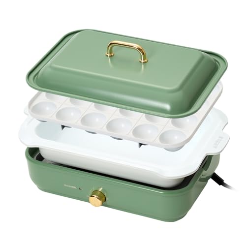 アイリスオーヤマのホットプレートPHP-1002TCは、コンパクト&着脱式で温度調節機能付き。たこやき器と深鍋プレート2枚、1000Wで簡単お手入れが可能。おしゃれなアッシュグリーンで保証付き。