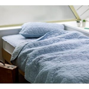 西川のシングル敷き布団カバーは、肌に優しい100%綿製。コの字ファスナー採用で付け替え簡単。洗える無地デザイン、ネイビー色。