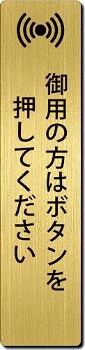おしゃれなヘアラインゴールドのサインプレート。サイズ150mm×35mm×1.5mm、UV対策のアクリル2層板。黒文字のレーザー彫刻で、粘着テープ付き。玄関やインターフォンに最適なスタイリッシュな日本製品です。