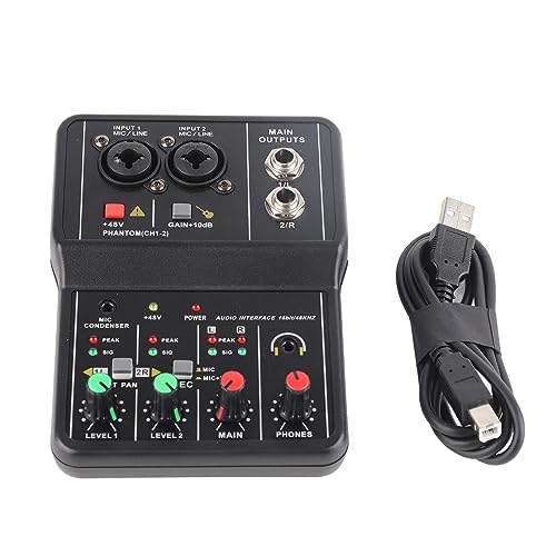 2チャンネルオーディオミキサーは、USB接続でポータブルに使えるミニサウンドボード。48V電源対応で、音楽録音やホームカラオケに最適なコンパクトサイズです。
