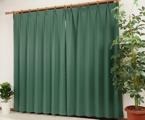 かーてん屋さんアウトレットのオーダーカーテン[ピティ]は、無地のダークグリーン色で、防炎・遮光・断熱・遮熱機能を備えています。形状記憶素材を使用し、カジュアルな雰囲気を演出。サイズは幅130cm、丈130cmです。