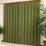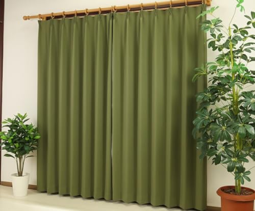 かーてん屋さんアウトレットのオーダーカーテン[ピティ]は、無地オリーブ色で防炎・遮光・断熱・遮熱機能を備えています。形状記憶素材を使用し、カジュアルなデザイン。サイズは幅100cm、丈165cmです。