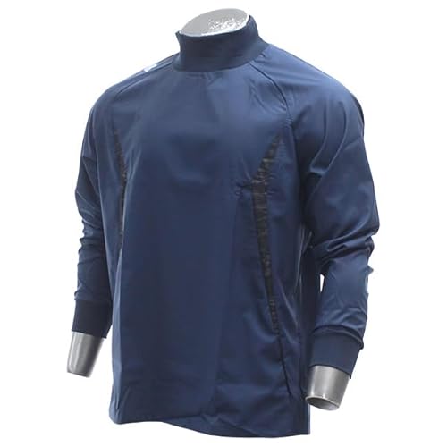 デサントの野球用ウインドシャツ(長袖PJ-252B)は、Dネイビー色でサイズはM。軽量で通気性に優れ、動きやすさを考慮したデザイン。練習や試合時に最適です。