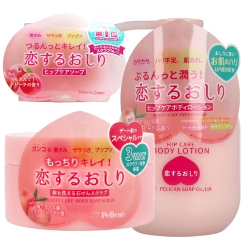 恋するおしり石鹸のスクラブは、体も洗える180gの特別ケア商品です。ガンコな黒ずみやザラつき、ブツブツに対応し、スウィートピーチの香りで美尻を目指します。保湿効果と濃密泡でボディケアも完璧。
