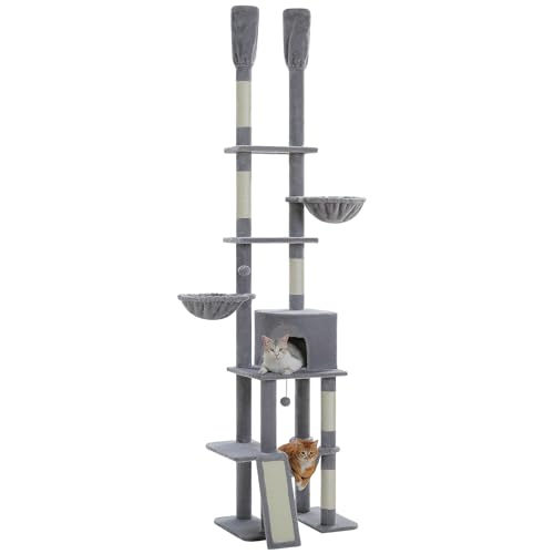 PETEPELA キャットタワー 突っ張りは、安定性と安全性を重視したデザインで、猫の遊び場を提供します。複数のレベルやハンモック付きで、登ったり遊んだりするのに最適です。