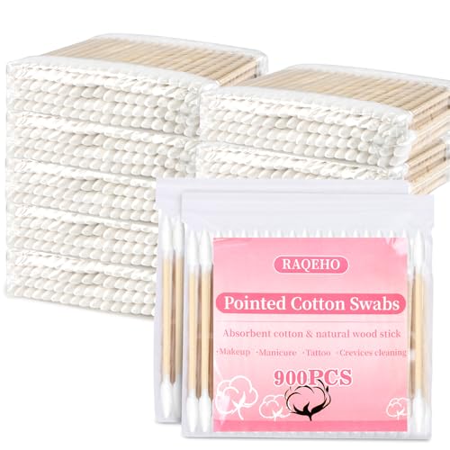RAQEHOの尖った綿棒300個セット。使い捨てダブルポイントタイプ、竹スティック付き。耳垢除去やメイク、ネイルアプリケーターに最適なビューティー&パーソナルケア用品です。