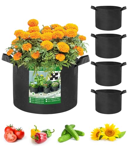 X XBEN 不織布プランターは、300Gの厚手不織布製で、強化された縫製の5枚入り。5ガロン(約19L)サイズは、直径29cm、高さ25cm。ガーデニングや家庭菜園に最適です。