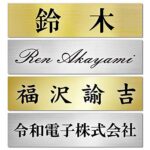 おしゃれなシルバー表札プレート。サイズは122mm×20mm、極薄0.8mm厚の貼付タイプです。マンションや戸建ての玄関、屋外ポスト、門柱に最適。両面テープ付きで簡単取り付け。