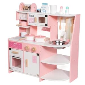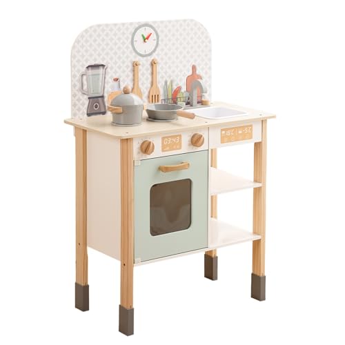 リビングにぴったりの木製キッチン「ONE STEP」。おままごとやごっこ遊びに最適で、充実した付属品が魅力。収納力もあり、料理や調理器具、お食材ピースが揃っていて、楽しいお子様の遊びをサポートします。