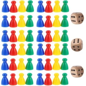 YFFSFDC ボードゲーム 木製 ポーンチェス 48個チェス+3個サイコロマルチカラー ゲーム ポーン チェスの駒 ポーン 人型 サイコロ チェスゲーム チェスのボードゲーム 卓上 駒の代わり 交換用 マーカー