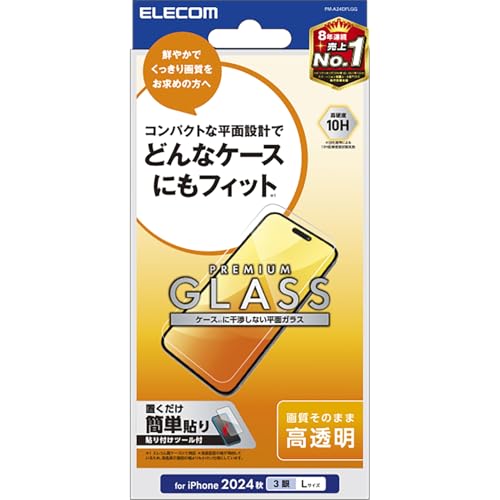エレコムのiPhone 16 Pro Max用ガラスフィルム。硬度10Hで強化された飛散防止設計。指紋が付きにくく、気泡が入らない【ガイド枠付き】。安心の保護性能を提供します。
