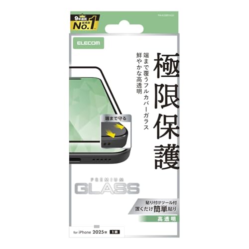 エレコムのiPhone Airガラスフィルムは、硬度10Hで99%カバー率を誇る全面保護タイプ。指紋が付きにくく、気泡も入らない設計。貼り付けツール付き。