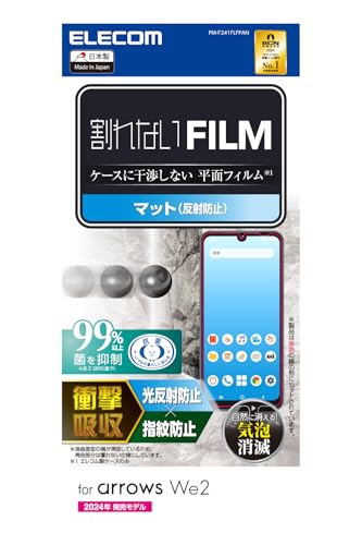 エレコム arrows We2 (F-52E/FCG02) フィルムは、マット仕上げで反射防止、指紋防止、衝撃吸収機能を備えた抗菌タイプ。気泡ゼロで貼り直し可能、自己吸着、エアーレス設計。光の映り込みを軽減します。