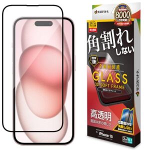 ラスタバナナ ガラスフィルム iPhone15 2眼 専用 全面保護 高光沢 透明 クリア 角割れしない 0.25mm 硬度10H SG3876IP361