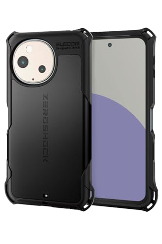 エレコム AQUOS sense9 ケースは、ハイブリッドゼロショック設計で衝撃を吸収。4つの角にダンパーを搭載し、ダブルレイヤーで耐衝撃性を向上。カメラレンズ保護とストラップホール付き。色はブラック。