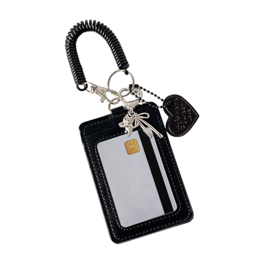 フォトカードIDホルダー、PUレザー製、耐久性のIDカードスリーブ。キュートなハートチャームとスパイラルリストコイルストラップ付き。トラスクールオフィスに最適な実用的デイリーコレクション。