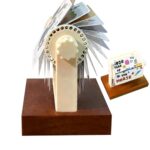 2026年用の小型デスク卓上カレンダー。木製ベースのキュートな回転ドゥードルで、家庭やオフィス、学校での予定管理に最適です。