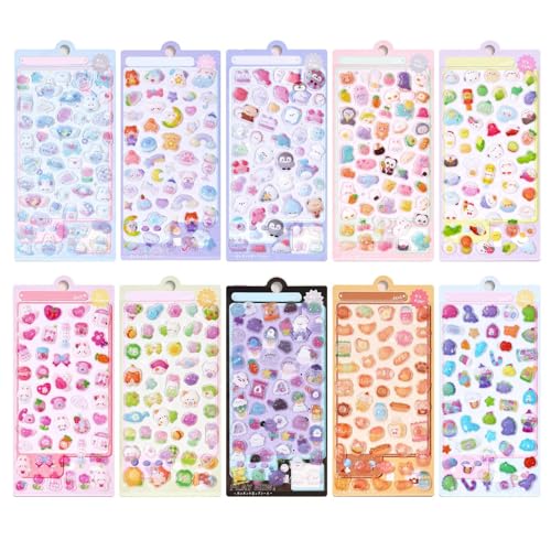 かわいい立体シール10個入り、剥がせる再利用可能な動物デザイン。スクラップブッキングやスマートフォンケース、ノートブックに最適。誕生日やクリスマス、パーティーのフェイバーとしても楽しめます。