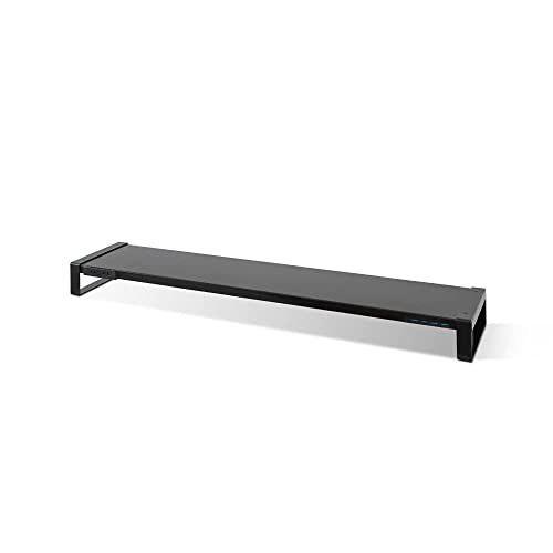 [天通ライト] モニター台 モニタースタンド 机上ラック 机上台 モニター 台 ペンホルダー搭載 USB コンセント搭載 幅110cm 奥行21cm マルチディスプレイ デュアルディスプレイ モニター2台に対応 スチール製 pms-1100-uj-bk (D1100mmxH90mm, ブラック)の高価買取