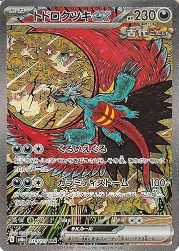 ポケモンカードゲームSV8aのハイクラスパック「テラスタルフェスex」には、トドロクツキex SAR (218/187)が含まれています。これは悪タイプのたねポケモンで、特別な能力や強力な技を持つ魅力的なカードです。
