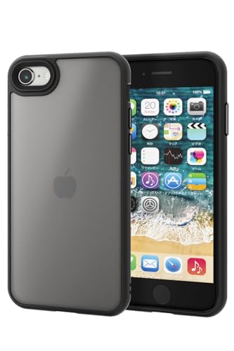 エレコムのiPhone SE(第2世代/第3世代)/8/7用ハイブリッドケース。耐衝撃で米軍MIL規格適合、半透明マット仕上げ。ストラップホール付き、カメラ保護設計、ワイヤレス充電対応、指紋防止機能。