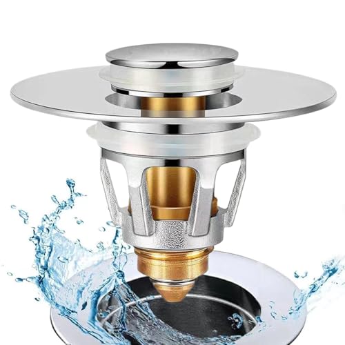 洗面台や浴槽に使用するストッパーや排水フィルターです。プッシュ式のシンクプラグ、交換用ストレーナー付きで、キッチンやバスルームに最適。
