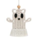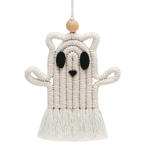 Yhzzuub ハロウィーンの織物ゴースト装飾品。可愛いマクラメタペストリーで、屋内の壁や窓、ドアを飾るのに最適です。季節の写真撮影小道具にもおすすめ!