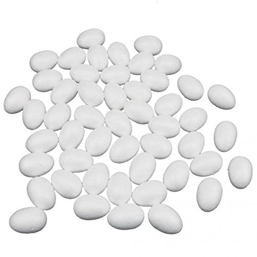 発泡スチロールの卵型100ピースセット。サイズは5cmで、ホワイトの色合い。手芸やクラフトに最適なDIY素材です。自由な創作が楽しめるアイテム。