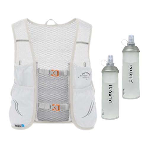 ハイドレーションバッグ1.5Lを搭載した水化背心。軽量で通気性の良いポリエステル・ナイロン素材使用。ランニング、バイク、ハイキングに最適な給水ベスト。カラーはライトグレーオレンジ、サイズはM。
