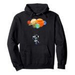 宇宙飛行士に最適なバルーンパーカー。太陽系の惑星や天文学をテーマにしたデザインが特徴。軽量で防風性があり、アウトドア活動にも適しています。