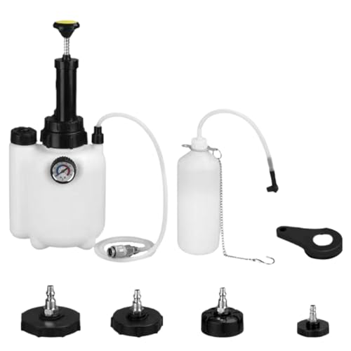 Brake Bleederボトルは、3L対応のブレーキフルード交換用加圧ブリーダーシステムです。一人での作業が可能で、車両整備やメンテナンスに最適な便利な工具です。エンジンオイル交換にも使用できます。