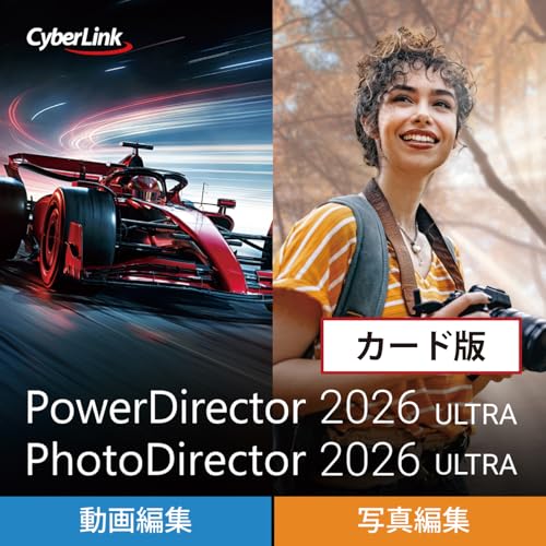 【Amazon.co.jp限定】PowerDirector 2026 Ultra & PhotoDirector 2026 Ultraは、AI機能搭載の動画編集・写真編集ソフト。補正、切り抜き、合成機能も充実。永続ライセンスでWindows対応のカード版です。