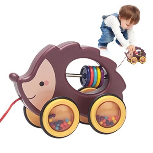 引っ張る車のプルトイで、音が鳴る可愛いデザイン。赤ちゃんの指先訓練や歩行練習に最適。色認識を促す知育玩具で、ハリネズミモチーフ。握りやすく、省スペース設計。1歳から2歳向け。