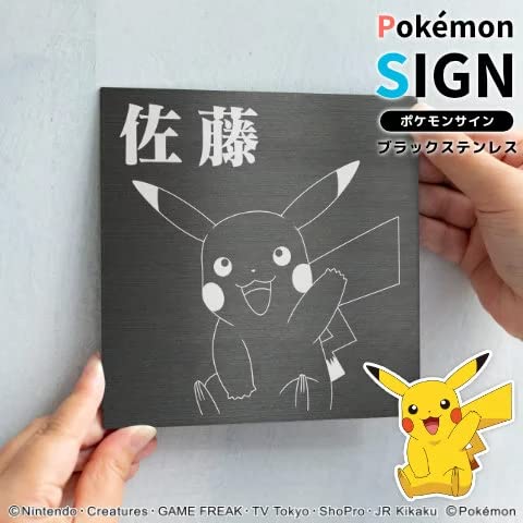 ポケモンの表札「Pokémon SIGN」ブラックステンレスタイプは、耐久性に優れた素材で、外部環境にも強い。シンプルでスタイリッシュなデザインで、ポケモンファンに最適なアイテムです。