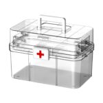 大容量の救急箱で、3層構造が特徴。携帯用薬箱として家庭、キャンプ、旅行に最適です。ハンドル付きで持ち運びも便利。化粧品やツールの収納にも利用できます。サイズは32x21x21cmで、ロック付き。