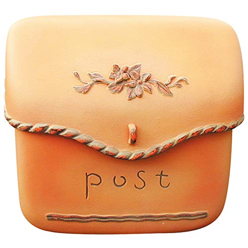 おしゃれな壁掛けポーチ「ディーズ ガーデン」は、オレンジ色のヨーロッパ風デザインで、ブロック塀や塗り壁に最適。可愛い茶色のアクセントが魅力の郵便受けです。