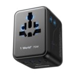 MOMAXの変換プラグはPD 70Wの急速充電に対応し、海外でも使えるマルチタイプ。3つのUSB-C PD、2つのUSB-A QC、2つのACコンセントを搭載し、7台同時充電可能。全世界対応で便利。