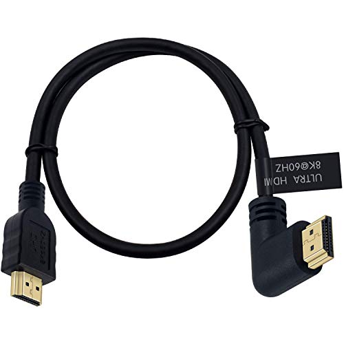 Poyiccotの8K HDMIケーブルは、60cmのL型デザインで、右向きのHDMIオス-オス接続を提供します。高速48Gbps、8K 60Hz対応のHDMI 2.1ケーブルです。