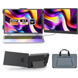 LGGST ポータブルモニター デュアルモニター 14インチ FHD 1080P IPSパネル搭載 300nit高輝度&1000:1高コントラスト ノードパソコン用デュアルディスプレイ 180°回転可能 Type-C/HDMI プラグアンドプレイ ビジネス/ゲーム/動画編集に最適
