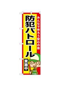 のぼり のぼり旗 防犯パトロール実施中 52515 W45×H150cm 1枚 三方三巻 販促 商売繁盛【受注生産品】