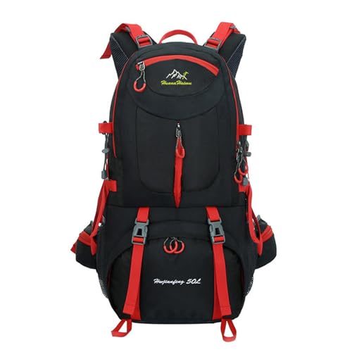 PORRASSOリュックは50Lの大容量で、ナイロン製。多機能ポケットや撥水加工、PC収納、靴入れを備え、男女兼用。ジョギングや自転車、旅行、登山に最適なアウトドアバックパックです。