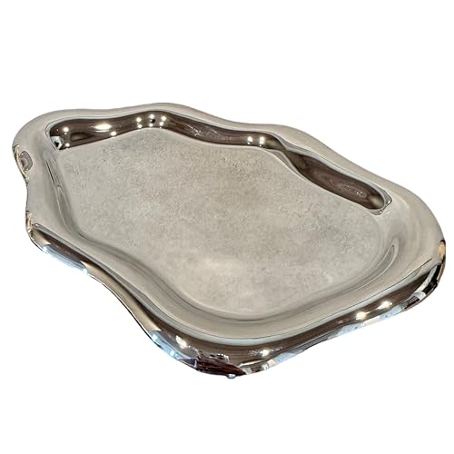 PearPicoのミラー トレイは、波打つデザインのラウンド型で、軽量なABS樹脂製。アクセサリー収納に最適で、シルバーの韓国風インテリア雑貨としても人気。