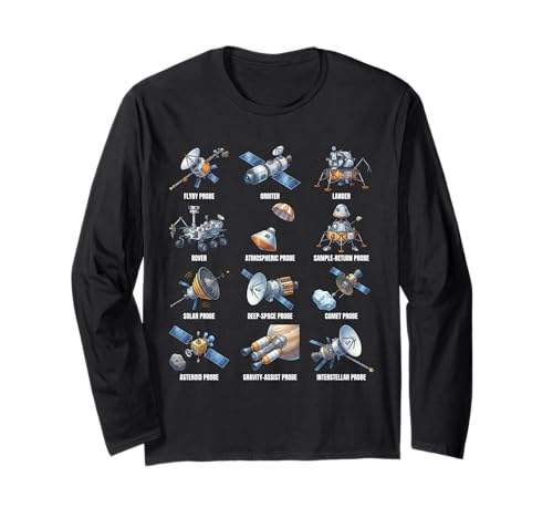 宇宙探査機には、ローバー、オービター、ランダーがあります。天文学的データを収集し、宇宙探査の促進に貢献。長袖Tシャツは、これらのテーマをデザインした製品で、宇宙への興味を表現します。