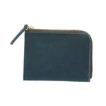 本革製のL字ファスナー小銭入れミニ財布。おしゃれなピーコックブルー色で、薄型かつ軽量、コンパクトなデザイン。カード入れ付きで、男性に最適なアイテム。