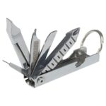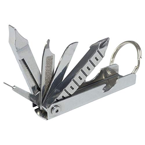 PR-7IN1TOOLは、プラスドライバー、マイナスドライバー、栓抜き、六角レンチ機能を持つ小型マルチツールです。キーリング付きで、アウトドアやキャンプに最適な便利なアイテムです。