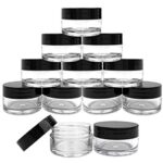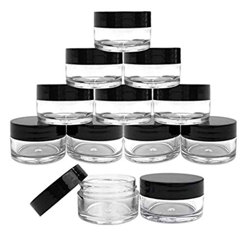 15mlの空の丸型クリアプラスチック化粧品ボトル。ブラック蓋付きで、フェイスクリームやアイシャドウなどに最適な12個セット。