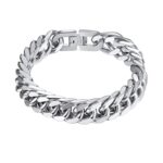 PROSTEELの極太メンズブレスレットは、ステンレス製の喜平チェーンで幅12mm、長さ23cm。金属アレルギー対応で、スタイリッシュなシルバーが特徴。おしゃれで使いやすいアイテムです。