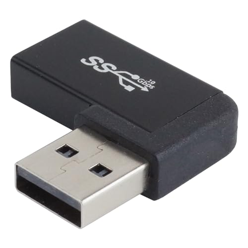 USB 3.2変換アダプタL型。USB Type-Aオスからメスに変換。90度角度変換でデータ転送に対応。左向き設計。モデルPR-USBA-LR1-H。